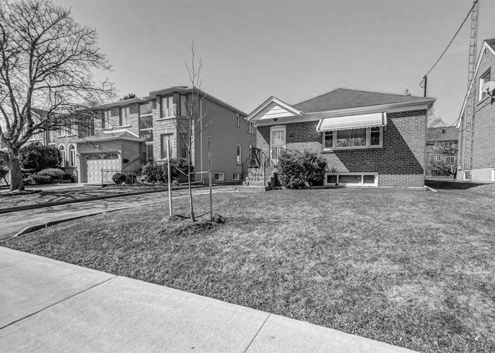 Commonly found in the neighbourhoods of North York, South Scarborough and Etobicoke, this type of home was designed to house returning veterans and their families, these are single-storey homes, typically with a finished or occupiable basement and a stair located at the front of the house or along the side. The floor plan is typically arranged with the kitchen, living and dining room towards the front and three bedrooms and one bathroom toward the rear. Many of these bungalows include a second entrance off the side for direct access to the basement, making it easy to convert into a basement unit. Bungalow lots tend to be generous in width and depth, with large front yard setbacks from the street.