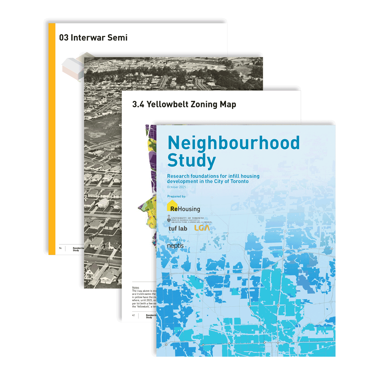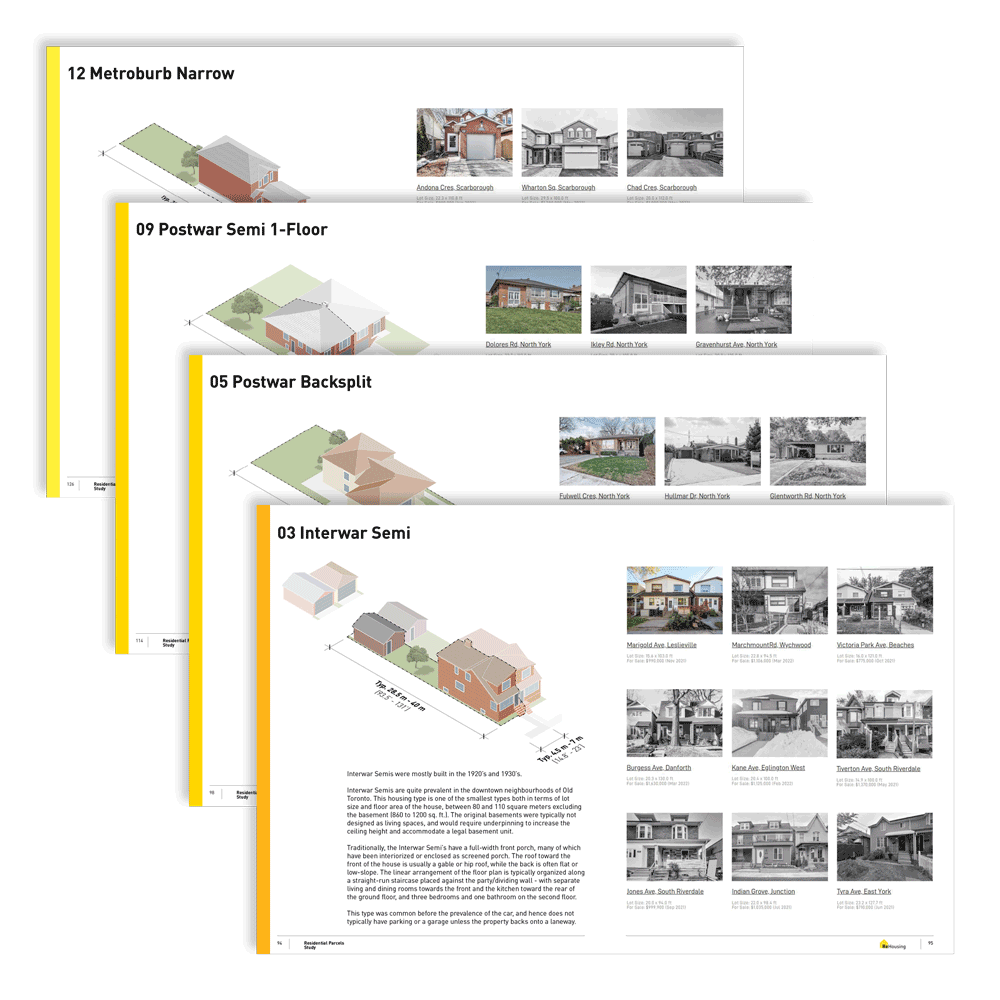 Through a comprehensive understanding of the range of Toronto’s parcel sizes and zoning laws, this study maps out lot sizes that make fourplexes viable, presents diagrammatic building plans for 1,440 lots in the city, and concludes with 9 detailed building designs.