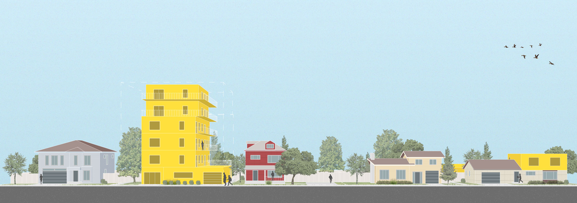 The goal of this visualization project was to produce drawings that are accessible and easy to understand for non-professionals, while accurately representing the proposed Zoning By-law provisions.